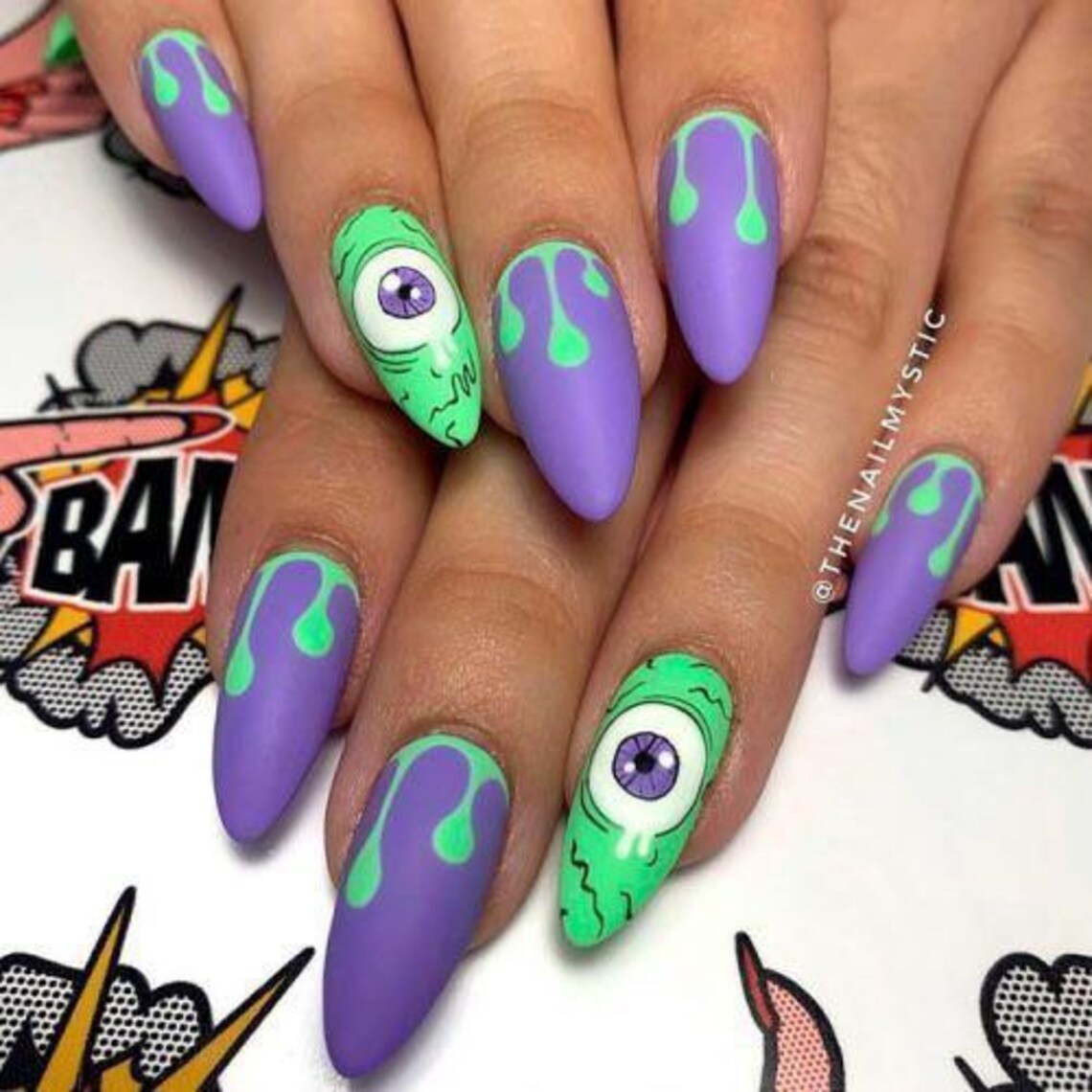 Halloween Press On Nails 2023. Each visit is so pleasant and all around such a treat! Byrdie / Tamara Staples Sharp Black and Red Vampire Nails. No, we're not reciting a witchy spell; we're introducing you to some of the season's coolest nail designs. If you click on links we provide, we may receive compensation. All nail techs deliver the most supreme service I think I've ever experienced. Halloween Press On Nails 2023.